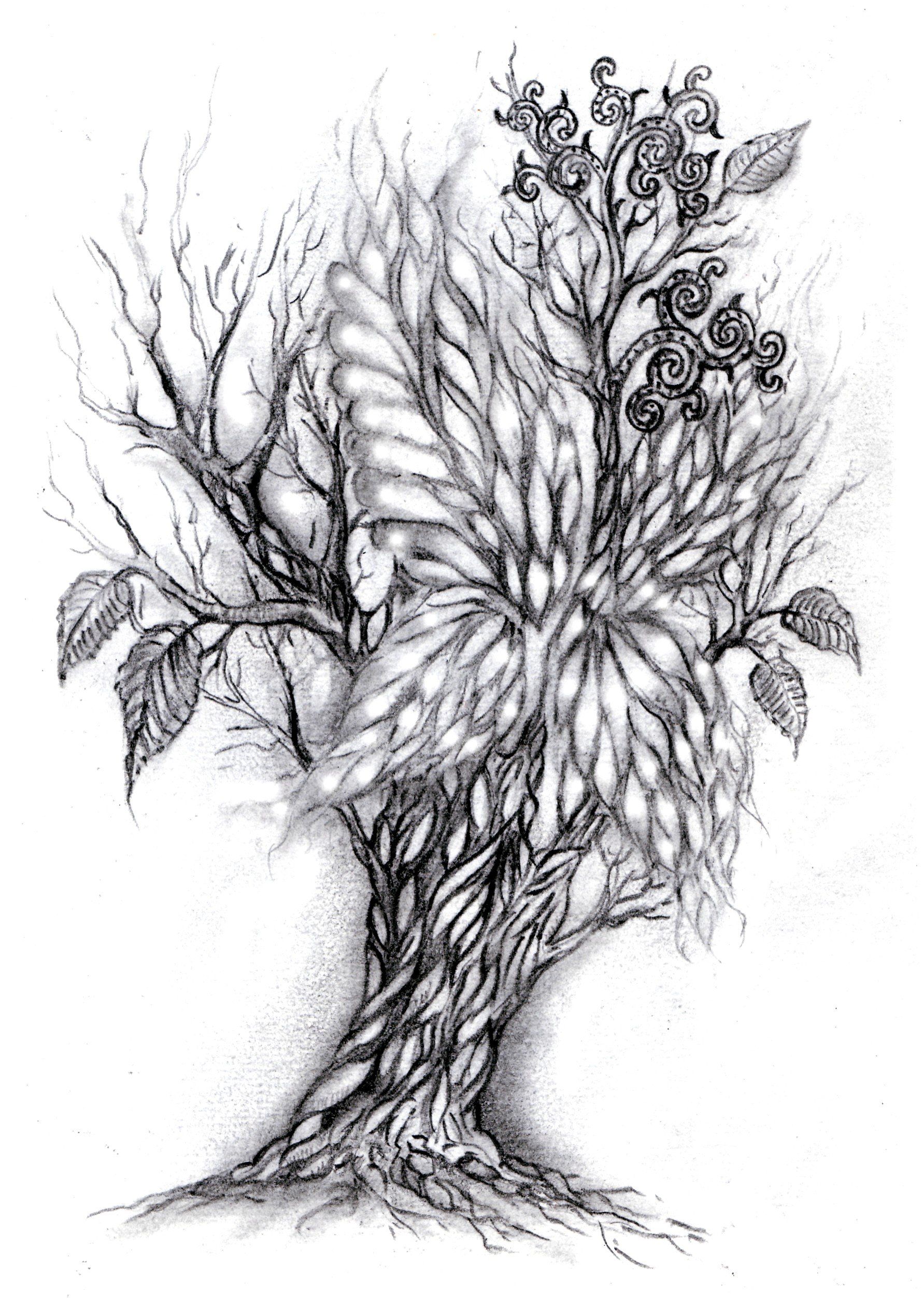El mundo es movido por creencias, personificado por el árbol en diversas facetas. Cambio y renovación. Hay unas ramas secas y otras con alguna hoja, representando distintos resultados frente al empuje de la savia. Hay un despertar recreado en las ramas haciendo volutas, sostenidas por un recio tronco, firmemente asentado al suelo. Desde el centro se configura una mariposa, conformada por hojas difuminadas que representan las ideas, opiniones y que en conjunto simboliza el espíritu del despertar. Un renacer en diversos ámbitos caracterizado por las hojas y los tallos a la espera de sus flores y frutos. La Tierra, que sostiene el tronco, es la Vida. Las ramas se elevan al cielo en busca del Sol, de la luz y sus sueños. Las ramas secas indican un presente incierto, faltas de savia, pero alrededor son aupadas por otras que, en su fortaleza, acabarán contagiándolas. El devenir del Renacimiento es tanto presente como futuro a la vez. Cada idea que se mueve, cada valor que se eleva al cielo equilibra el conjunto. Es el empuje de la Esencia. Sueño y fantasía, despertar hacia la ecuanimidad de la búsqueda de entendimiento, con la certeza de que la mariposa que subyace, simbolizando su espíritu, acabará por emprender el vuelo, para hablar al árbol de esperanza mientras lleguen las flores.