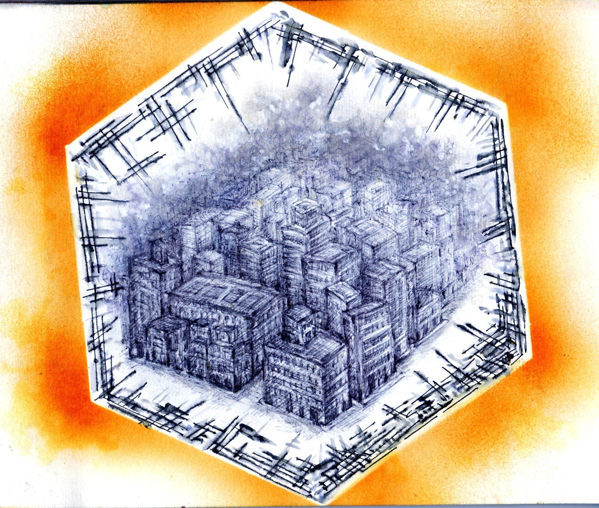 Imprimiendo un cierto dinamismo “Rey Midas” quiere hacer referencia al mítico rey que en un momento de poder deseó que todo lo que tocara se convirtiera en oro, objeto de su pasión. Las formas irregulares amarillas representan, queriendo dominar el espacio, los deseos. A igual que ellos, imprecisos, distintos en fuerza y tamaño. Arriba y abajo dos esferas representan el equilibrio necesario para que esos deseos no se extravíen convirtiéndose en meras quimeras, que más que ayudad, destruyen. El rey Midas sólo comenzó a hacerse consciente de su deseo cuando éste empezó a revelarle las consecuencias. En la parte superior la silueta de unas aves representa el vuelo de las ideas, insinuando un rumbo a seguir. El desapego necesario a los deseos es ese rumbo. No obstante la mayor parte del dibujo está ocupada por esas figuras irregulares amarillas, los deseos otorgándoles un inmerecido protagonismo. El rey Midas es un ejemplo para alertar de deseos fuera de control.